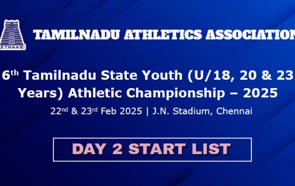 6th Tamilnadu State Youth Athletics Championships 2025 – Day 2 Start List
